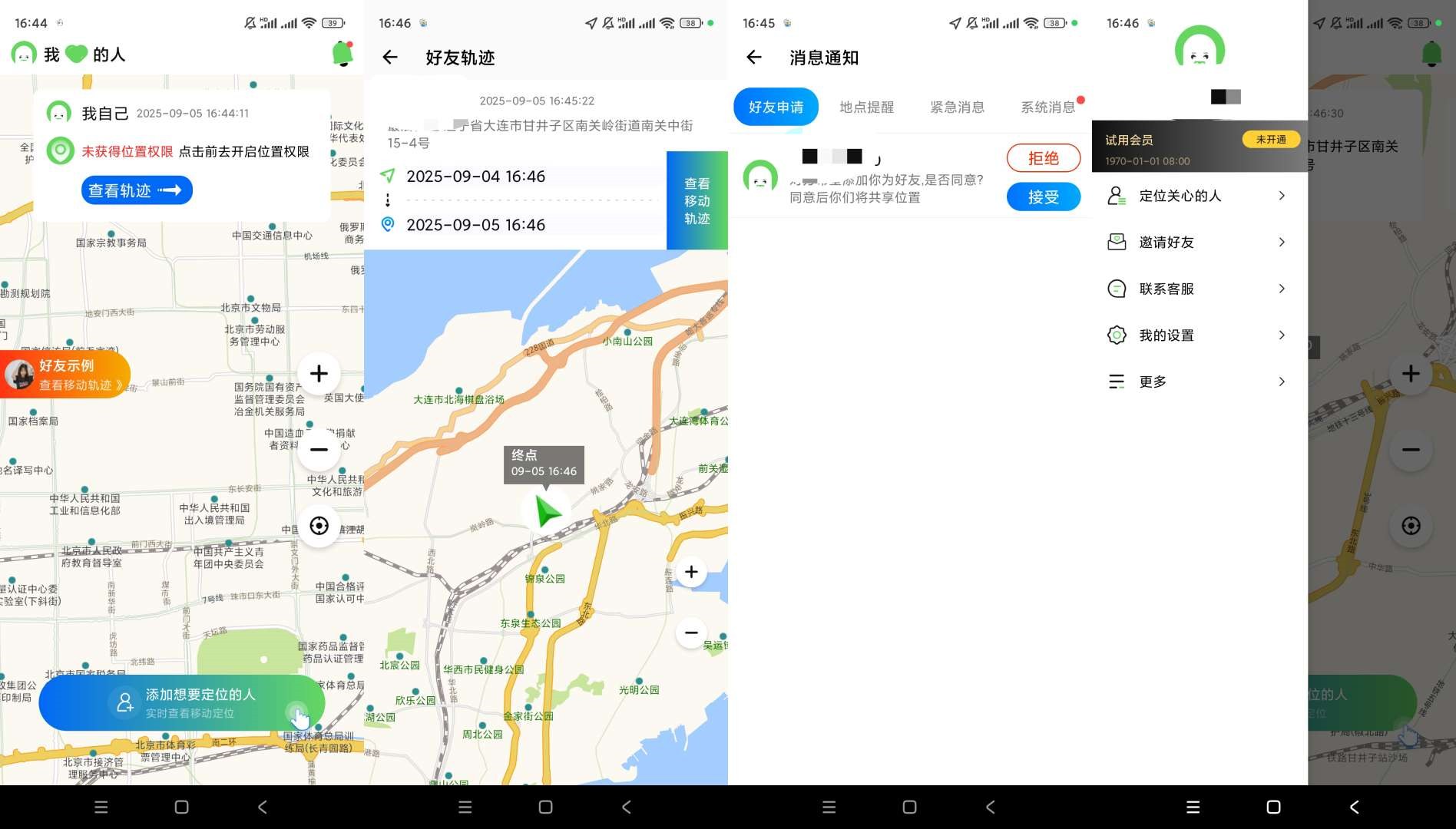 -轨迹查询,家人、好友出行安全防护,随时找到他们的位置。